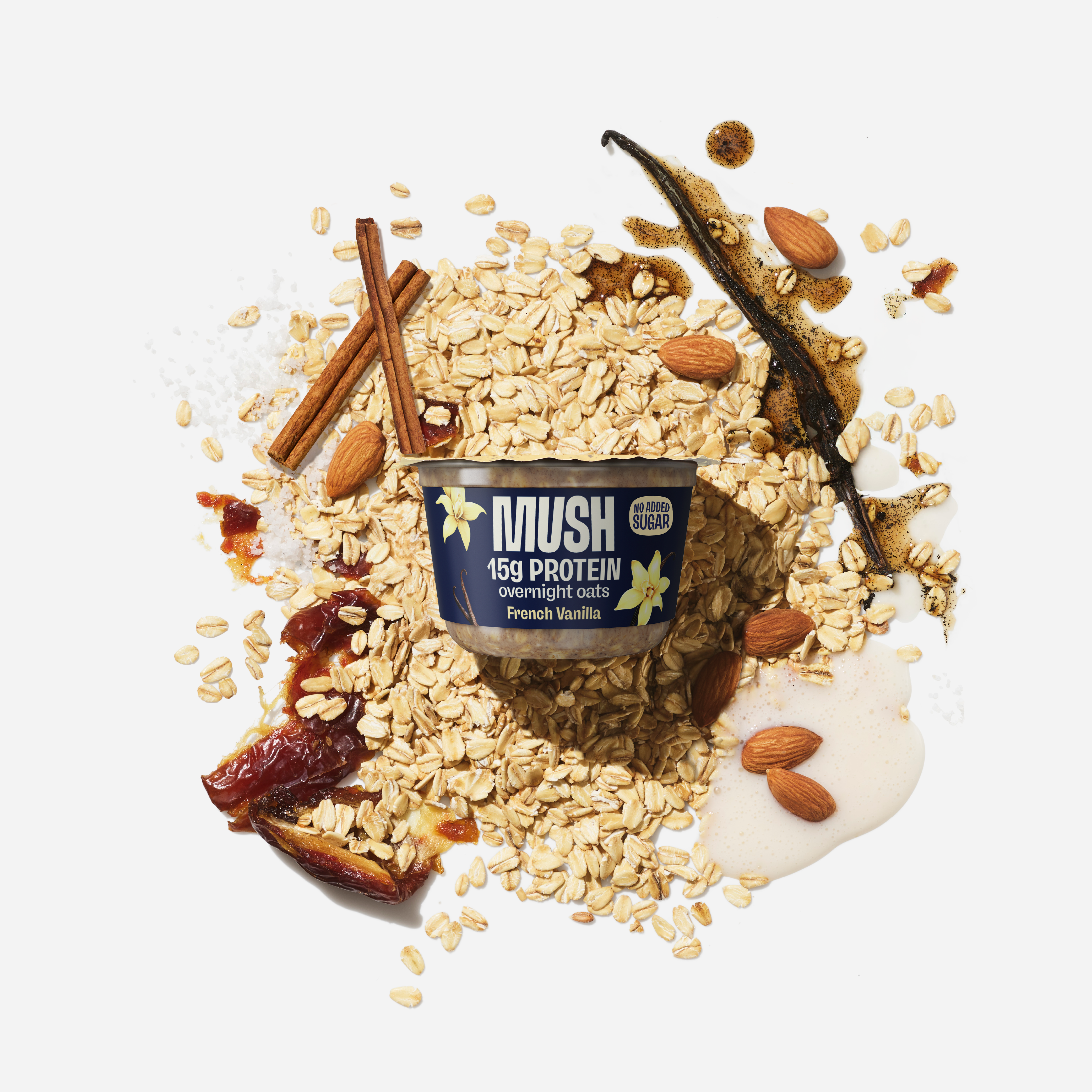 Old-school flavor, new-school fuel. MUSH Protein French Vanilla Overnight Oats blends creamy oat milk, real vanilla, nutrient-rich oats, caramelly dates, and a hint of sea salt. With 15g of protein, it’s a smooth, clean, energizing classic.