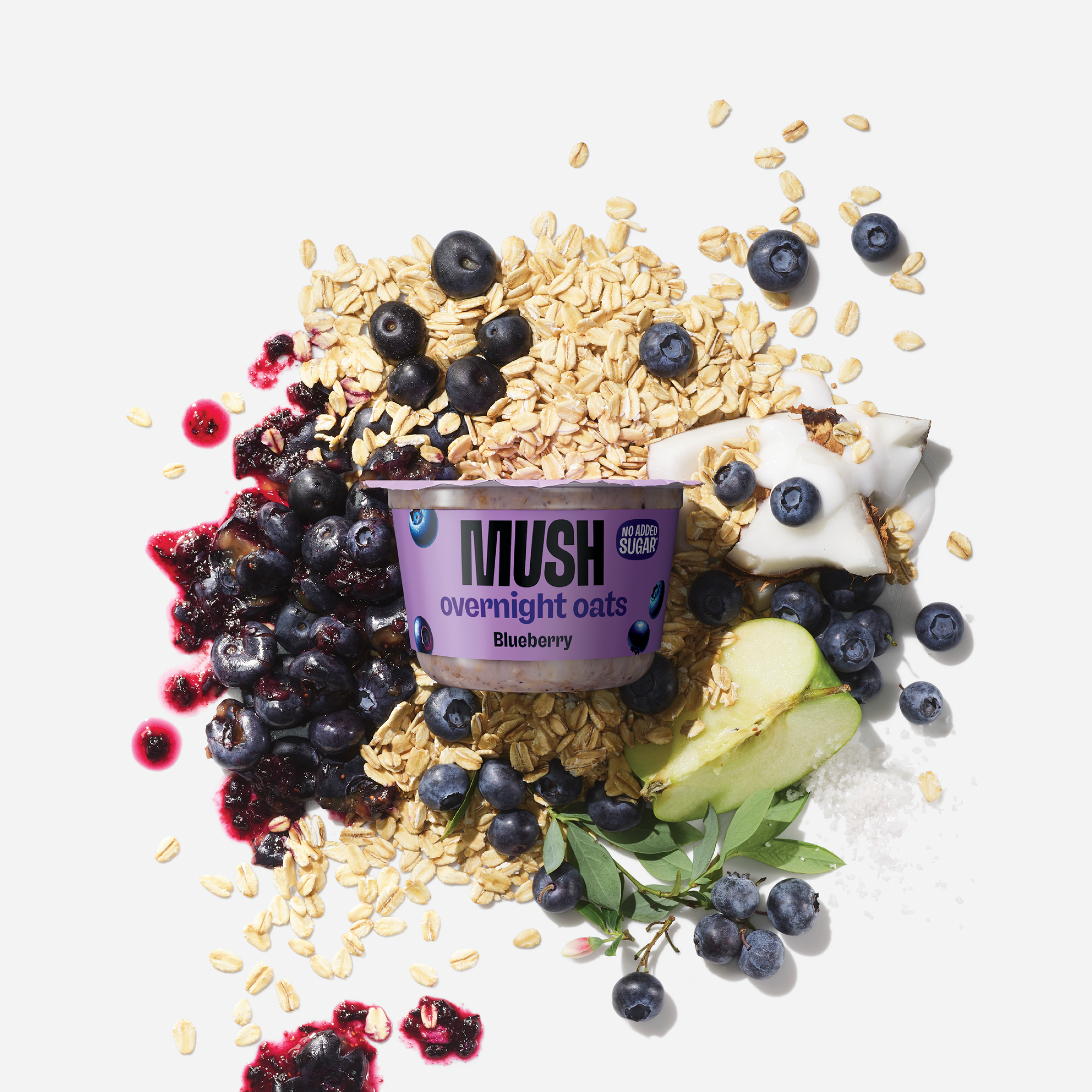 Juicy sweet and delightfully simple. Made with real antioxidant-rich blueberries, creamy coconut milk, and a touch of sea salt, MUSH Blueberry Overnight Oats deliver a balanced, fruity breakfast with big benefits and a pudding-like texture. 5g of protein, 4g of fiber, and none of the artificial junk you’d expect inside something that tastes so dreamy.